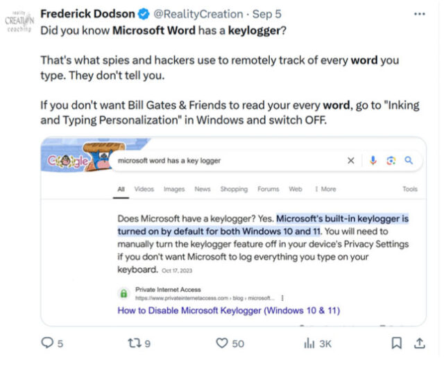 Microsoft Word verwendet einen Keylogger, weil es der Informationsbeschaffung dient. Warum glaubst du, dass in deren Computern „Intel“ steckt, wie man an den vielen Aufklebern sieht, die darauf geklebt sind?
