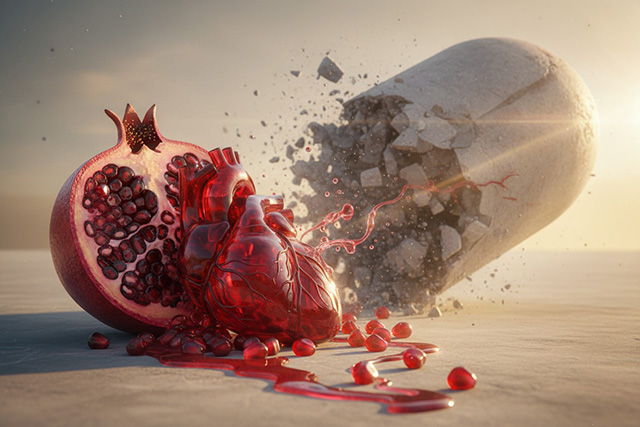 In einer wegweisenden Studie reduzierte sich bei Patienten mit schwerer Karotisstenose, die ein Jahr lang Granatapfelsaft tranken, die Intima-Media-Dicke der Arteria carotis communis – ein wichtiger Marker für atherosklerotische Plaques – um bis zu 30 %.