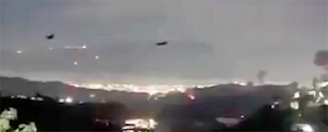 Aufnahmen des tatsächlichen Einsatzes zeigen, wie amerikanische Hubschrauber mitten in der Nacht in Caracas eintreffen, ähnlich wie im Szenario von Call of Duty .