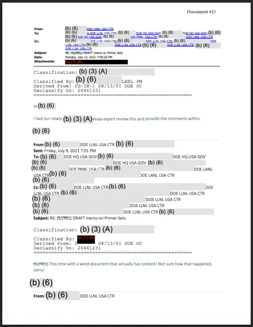 Die DOE-Unterlagen zeigen die gegenteilige Haltung innerhalb der Regierung: Das Design der PCR-Primer war so ernst, dass es eine klassifizierte Überprüfung durch Atomzeitalter-Labore erforderte, und die Ergebnisse wurden als so sensibel eingestuft, dass sie unter nationalen Sicherheits- und Geheimdienstschutz geschwärzt wurden.