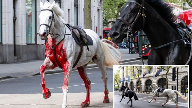 Zurück zum Omen: 24. April 2024. Fünf Pferde der Household Cavalry scheuten in der Nähe des Buckingham Palace, nachdem sie durch Baulärm erschreckt worden waren. Es entstand Chaos, als sie durch den Berufsverkehr stürmten, Menschen verletzten und Fahrzeuge beschädigten.