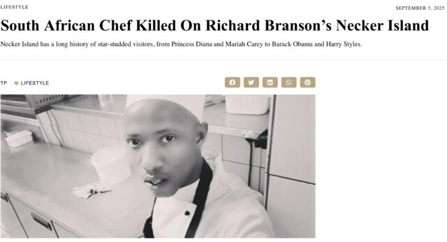 Sihle Somdaka, ein 37-jähriges aufstrebendes Kochtalent aus Südafrika und Vater von zwei Kindern, starb Ende August 2025 an den Folgen schwerer Kopfverletzungen, die er sich beim Verlassen einer Abschiedsfeier im Great House der Insel zugezogen hatte.