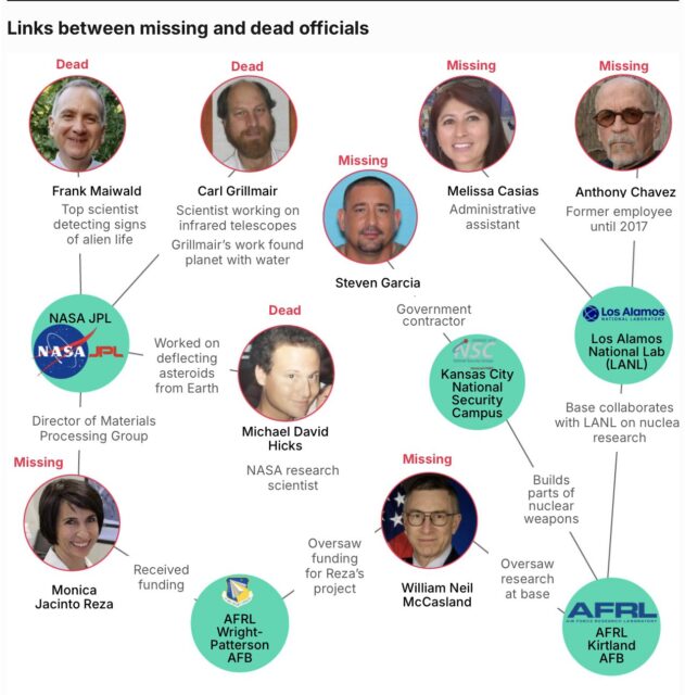 Zehn Personen. Alle mit Verbindungen zu Amerikas sensibelsten Militär-, Nuklear- und Luft- und Raumfahrtprogrammen.