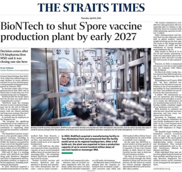 Dies war ihr größtes mRNA-Produktionsprojekt in Asien . Die Anlage, die 2022 von Novartis im Tuas Biomedical Park übernommen wurde, sollte ihr regionaler Hauptsitz für den asiatisch-pazifischen Raum werden.