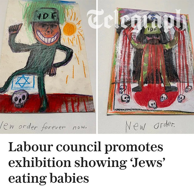 Groteske Blutverleumdungskunst genießt Schutz als „politische Meinungsäußerung“, während Tausende wegen Online-Äußerungen zur Einwanderung verhaftet werden.