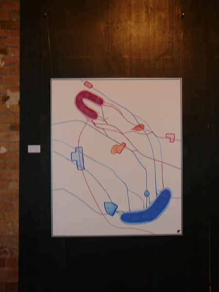 Der letzte Zyklus nannte sich Blockbildung. „Inspiriert durch Satellitenbilder amerikanischer Großstädte entstand die Blockbildung. Es ist die Eingrenzung des alltäglichen Lebens, Verkehrs, von Transportwegen und Gebäuden in eine feste und geometrische Form. Striche, Kreuzungen und Flächen bilden eine unkontrollierbare Epidemie – die zufällige Absichtlichkeit“ so der Text auf der Einladung.