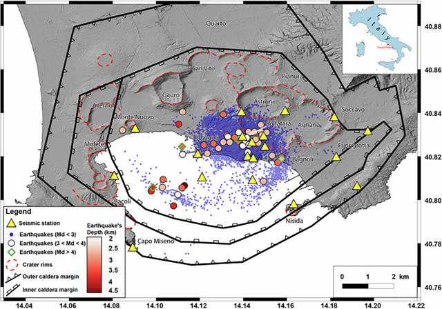 Titelbild: Die vereinfachten Calderagrenzen 79 sind mit schwarzen durchgezogenen Linien dargestellt. Die größten Bodenhebungen von bis zu 1,8 m im Zeitraum 2014–2024 wurden in der Stadt Pozzuoli gemessen, wo sich die meisten Epizentren befinden. Die Wissenschaftler fanden einen neuen Riss in der Erdkruste – die Folgen könnten verheerend sein. Westlich von Neapel liegt eines der […]